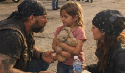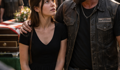 The bikers, a loose circle of leather vests, sun-faded tattoos, and weathered faces, exchanged looks that hovered somewhere between confusion and discomfort, because whatever they had expected from this afternoon, it hadn’t been this, hadn’t been a child offering something like a lifeline with both hands shaking.